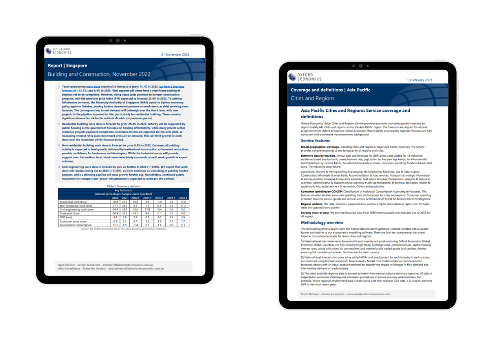Asia Forecasting Service provides building and construction industry insight and forecasts across 14 key Asian Pacific countries.