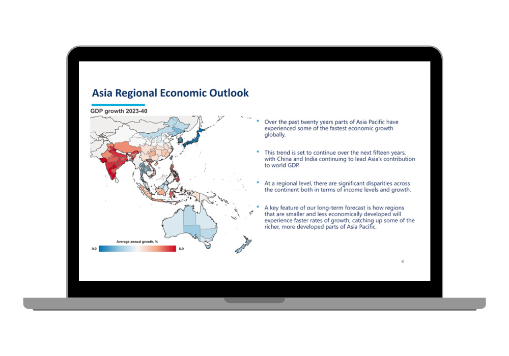 New Zealand, Bangladesh, China, Hong Kong, India, Indonesia, Japan, Malaysia, Philippines, Singapore, South Korea, Taiwan, Thailand and Vietnam. Where available sub-national forecasts are also supplied.